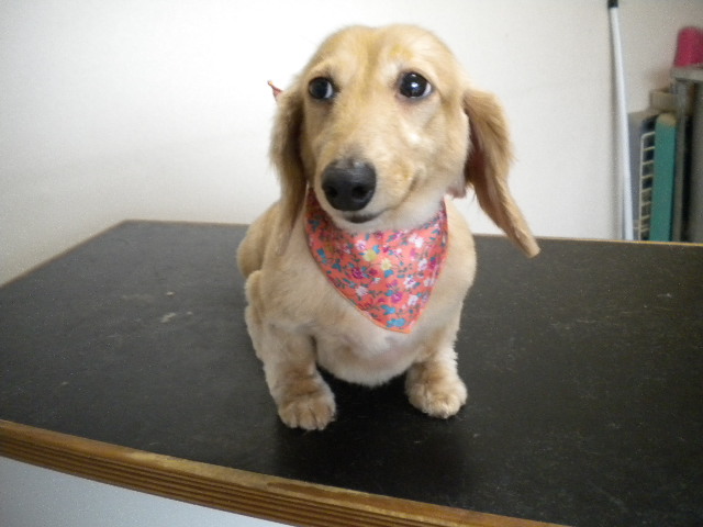 ダックスの女の子です。小さくてかわいい子です。今年の夏は、サマーカットで涼しく過ごしてね。 (11/07/06 16:10)