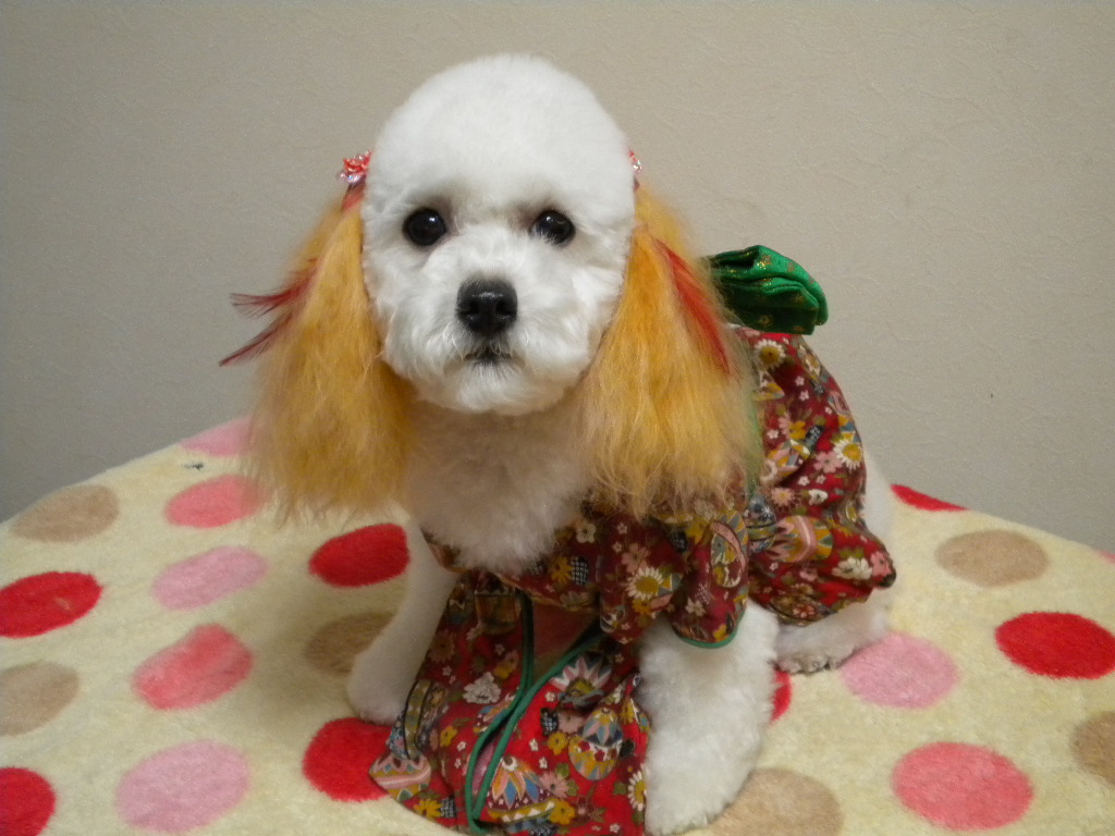 トイプードルの女の子です。カラーリングしたカットがおしゃれでしょ。とても個性的ですよ。 (10/02/05 17:24)