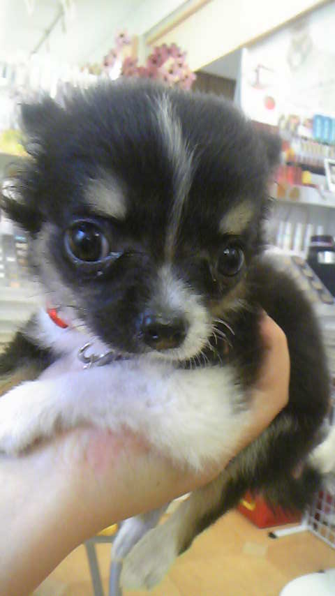 とっても小さくて、怖がり屋さんです。でも食欲旺盛でお姉さん犬のもこちゃんのごはんを横取りしちゃうそうです。 (11/04/15 17:59)