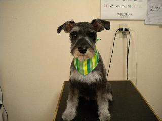 シュナウザーの男の子です。愛嬌たっぷりのかわいい子です。何でも食べるそうで飼い主さんも大変そうです。食べ物以外はお口に入れないでね。 (10/12/05 12:13)