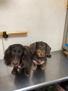 ミニチュアダックスの親子です。母親のまりんちゃんは、子犬のころ何度も飼い主さんが変わり今の飼い主さんのお家の子になりました。とってもいい子です。はなちゃんは、ご近所にパパもいます。とても仲良しの親子です。 (18/05/05 09:05)